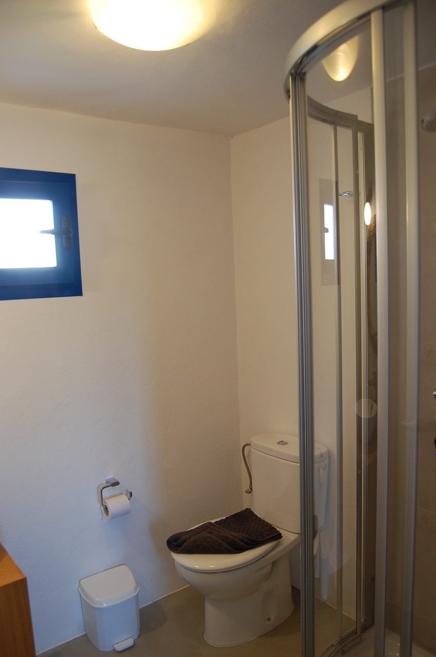 The main house has a double bedroom with en-suite bathroom, a second twin bedded room with bathroom and living area with open kitchen.